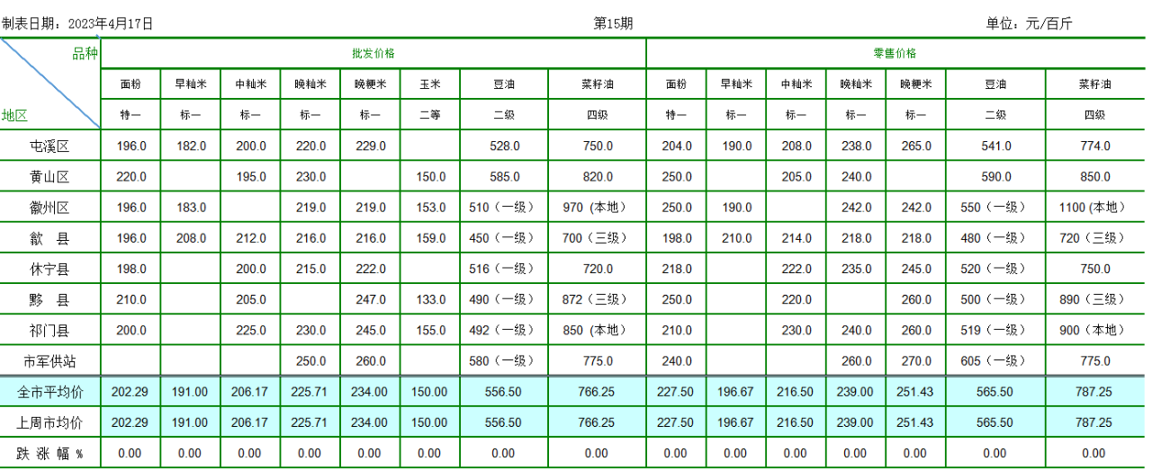 粮油批发、零售价格监测周报(2023年4月17日)