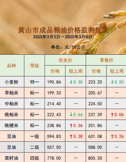 粮油批发、零售价格监测周报(2025年3月10日)