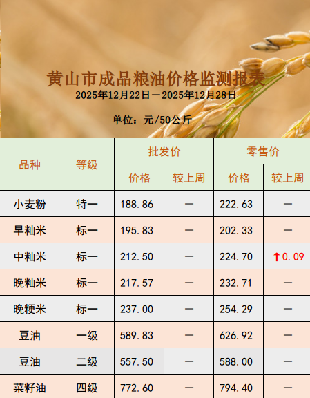粮油批发、零售价格监测周报(2025年12月29日)