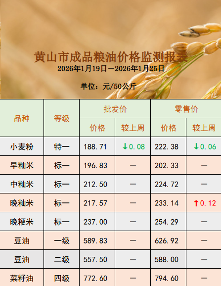 粮油批发、零售价格监测周报(2026年1月26日)