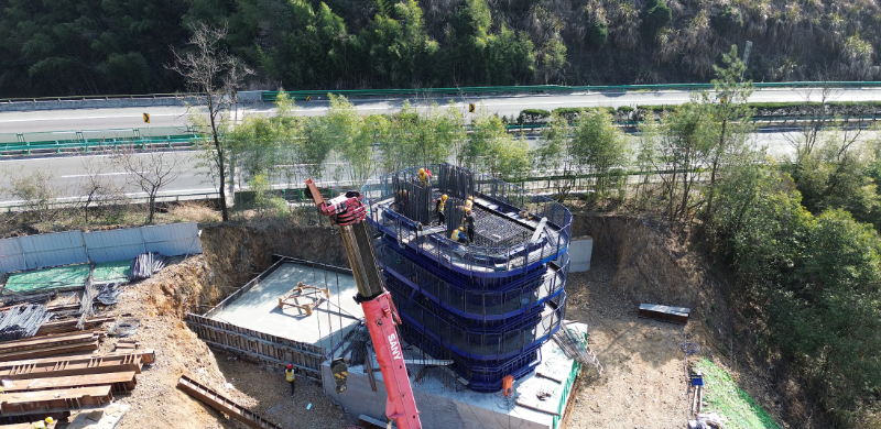与此同时,在西溪南镇的西溪南特大桥项目的施工现场,放眼望去,一整排桥墩“拔地而起”、气势恢宏。多名施工人员正有序开展钢筋焊接、材料打磨等作业,大家精益求精、严把质量,以实干担当推进节点建设。