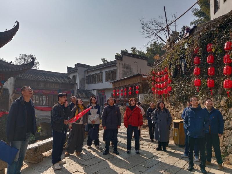 随后,大家按照“新四军集结出征”主题党日线路,走进徽州区呈坎镇灵山村,在讲解员的带领下,走山路、访水街、论发展,考察学习党建引领乡村振兴、促进群众增收的生动实践;在谢裕大茶文化博物馆,大家深入了解现代茶企以党建为引领、推动产业创新发展的先进做法,深度体验农文旅融合赋能实现从茶园到综合旅游体的精彩蝶变。