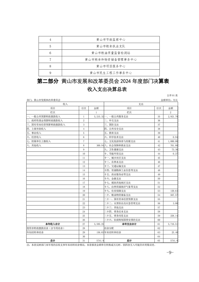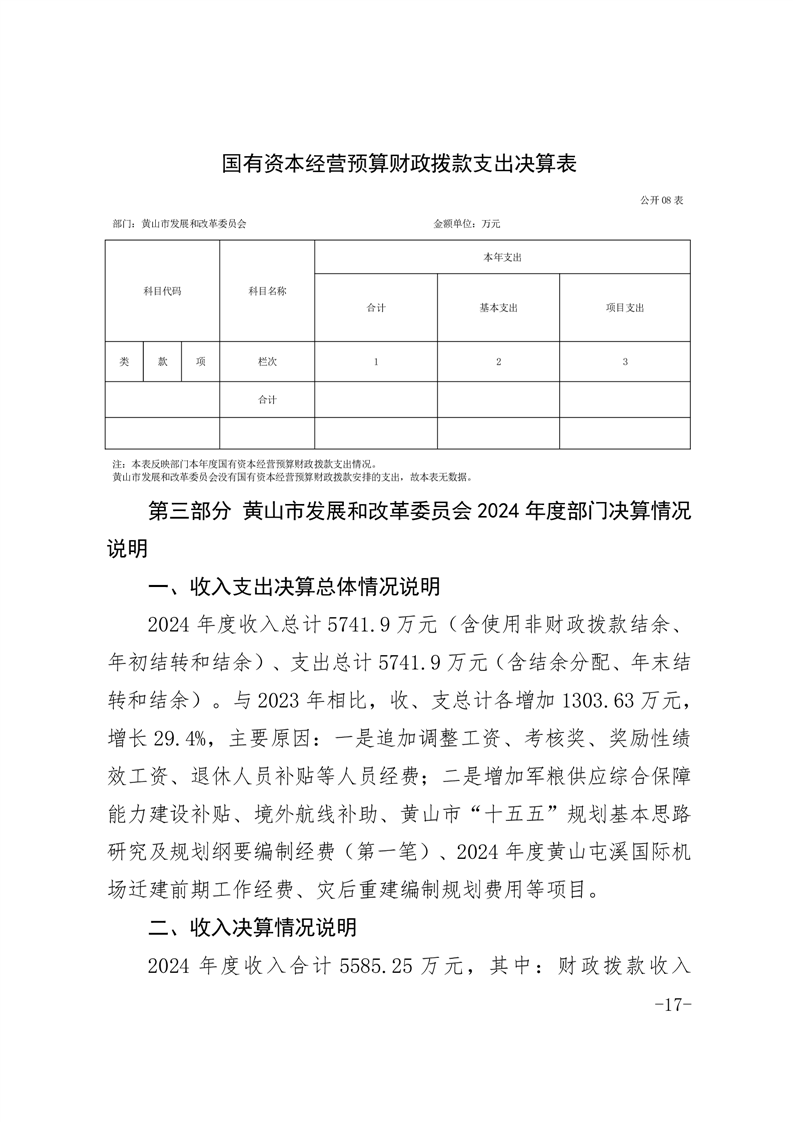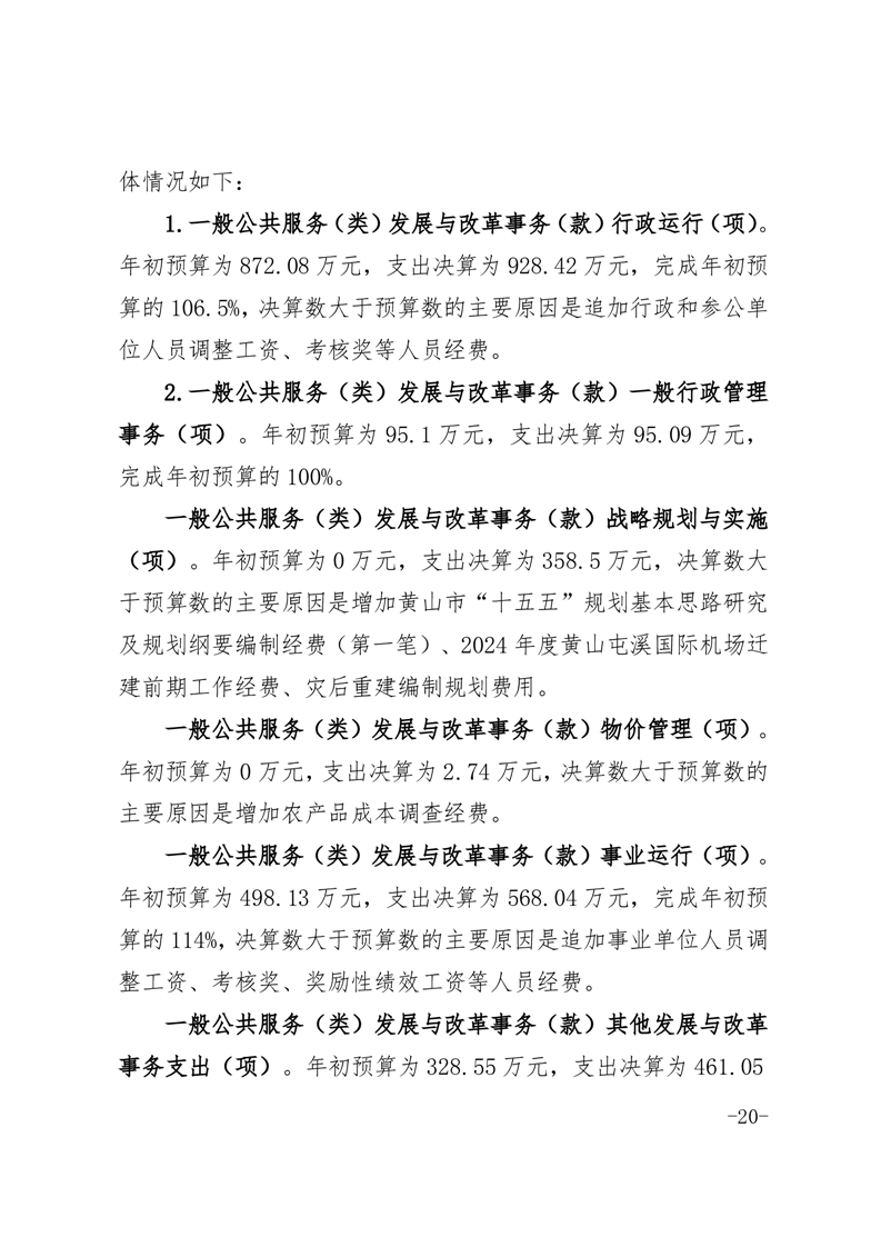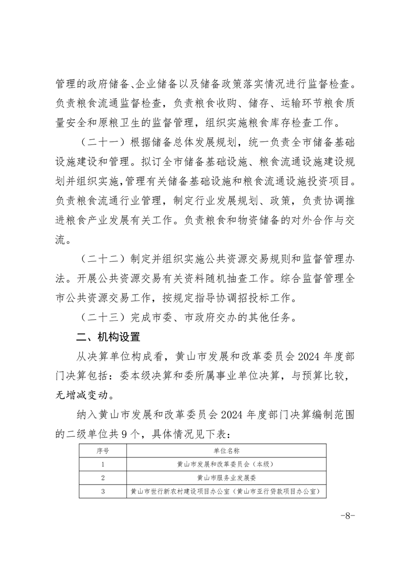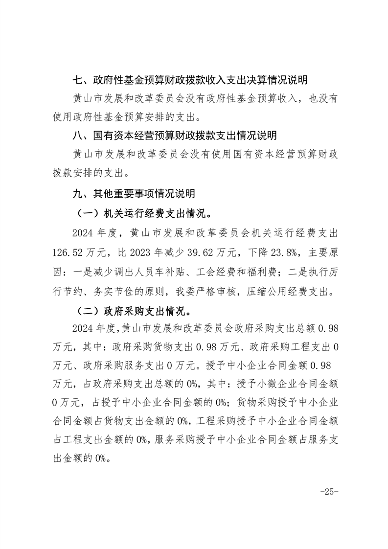 黄山市发展和改革委员会2024年度部门决算