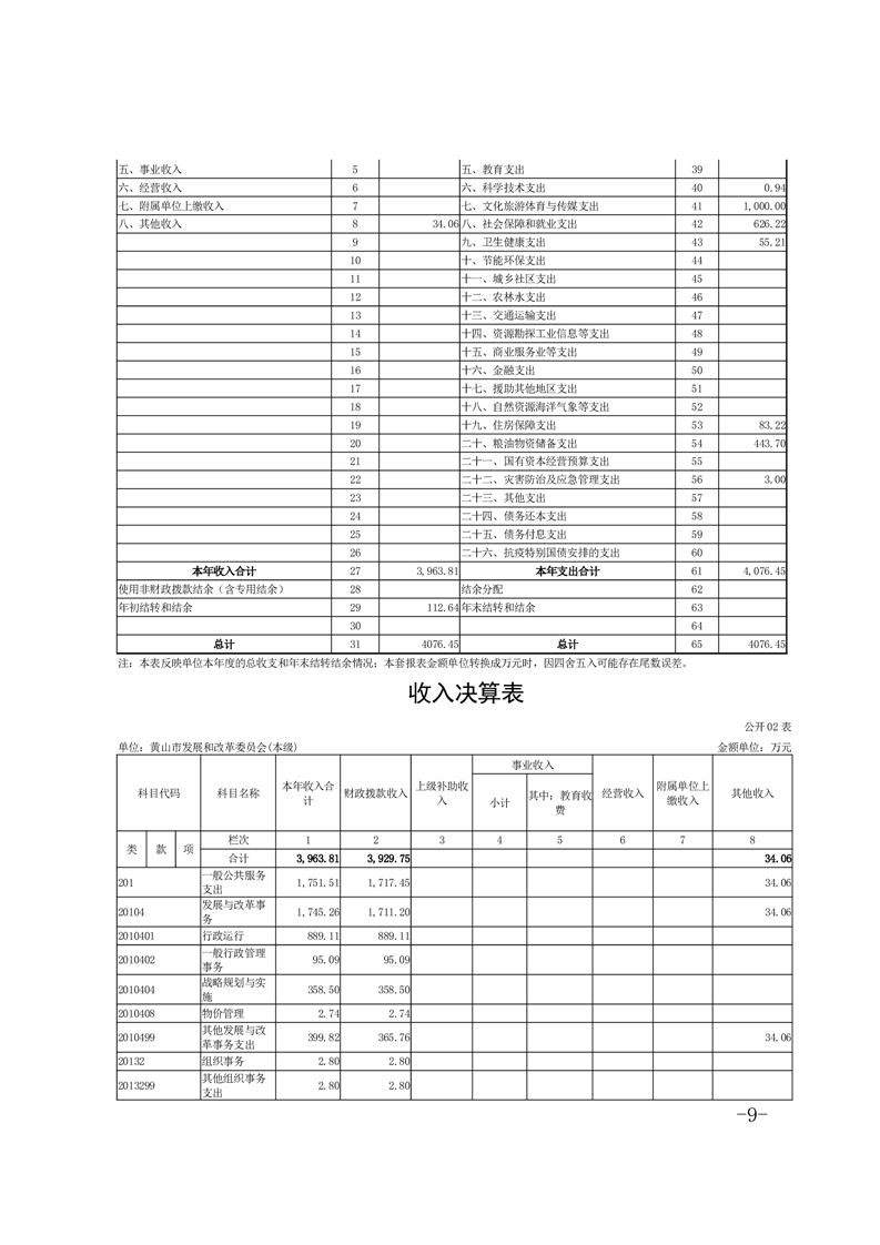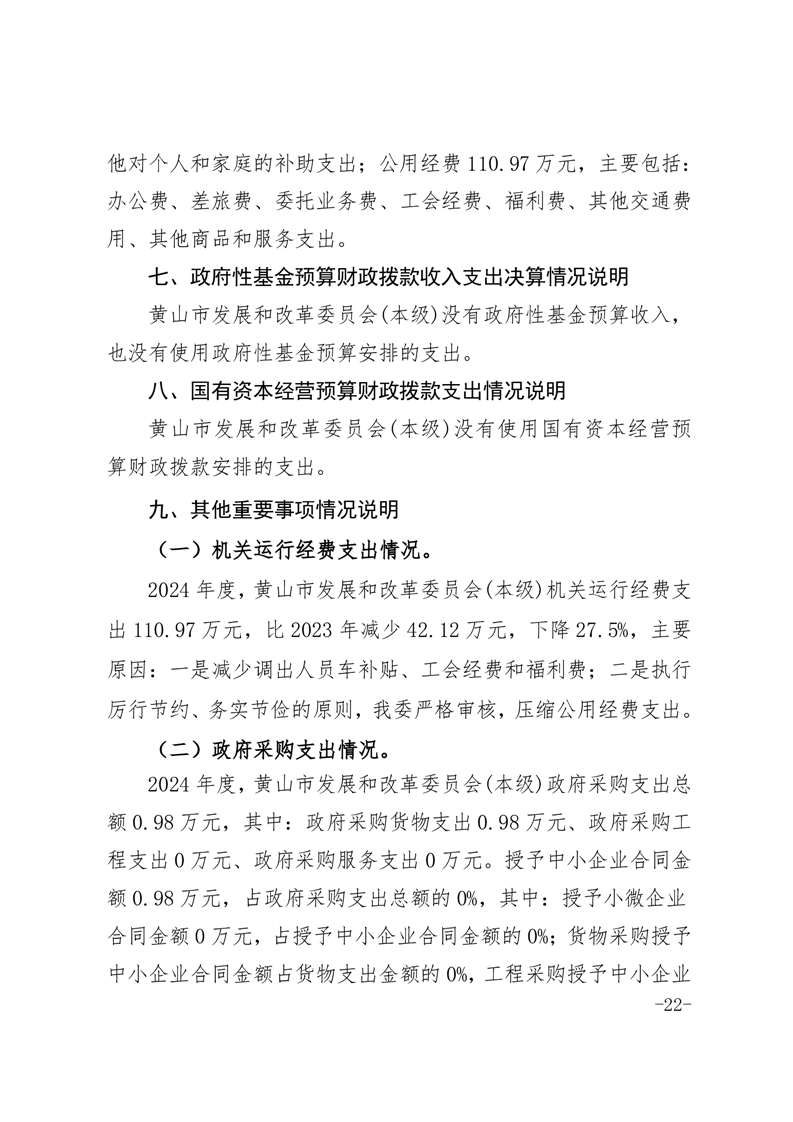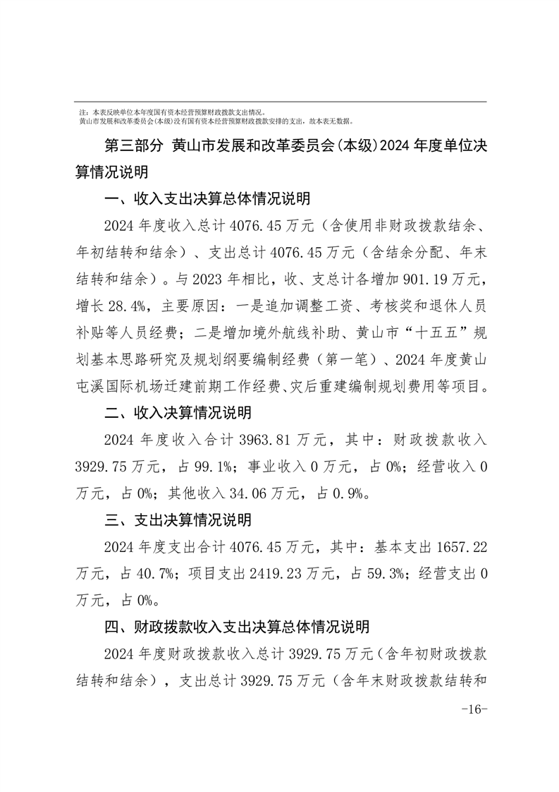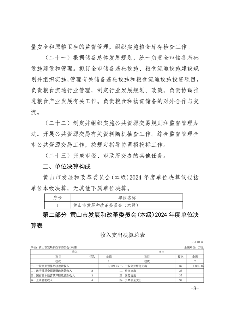 黄山市发展和改革委员会(本级)2024年度单位决算