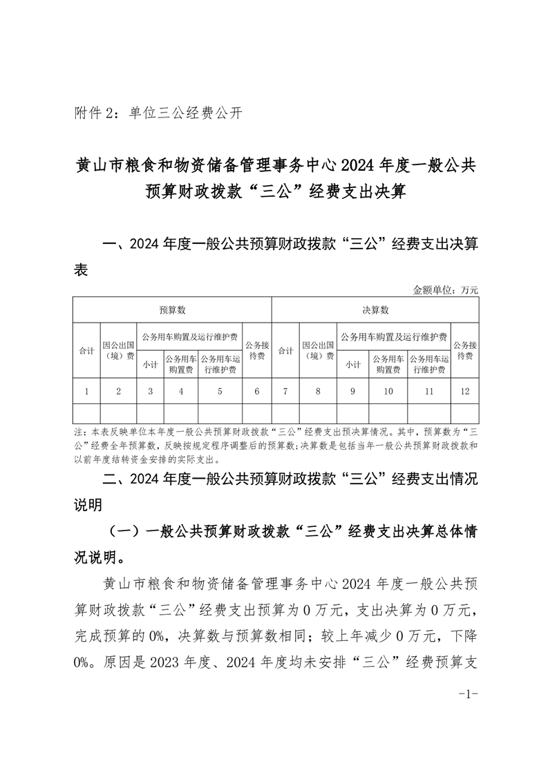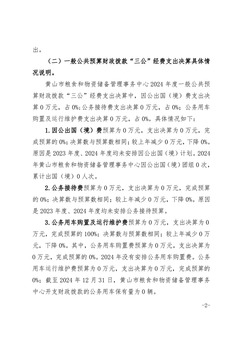 黄山市粮食和物资储备管理事务中心2024年度一般公共预算财政拨款“三公”经费支出决算