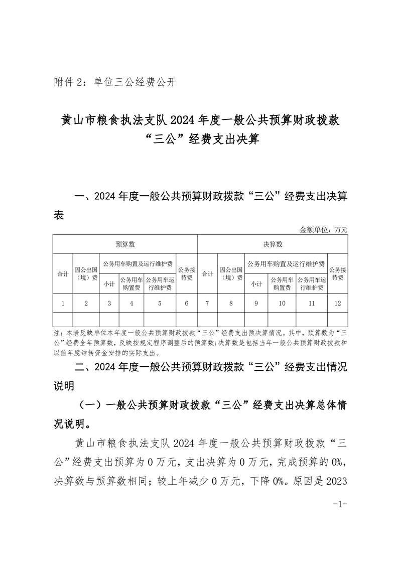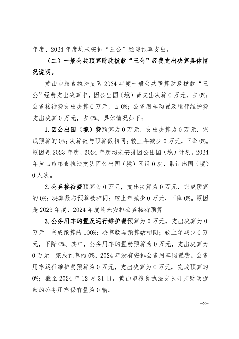 黄山市粮食执法支队2024年度一般公共预算财政拨款“三公”经费支出决算