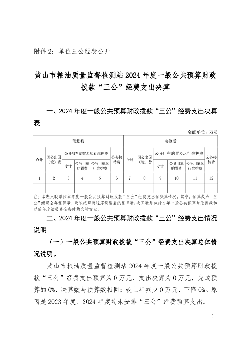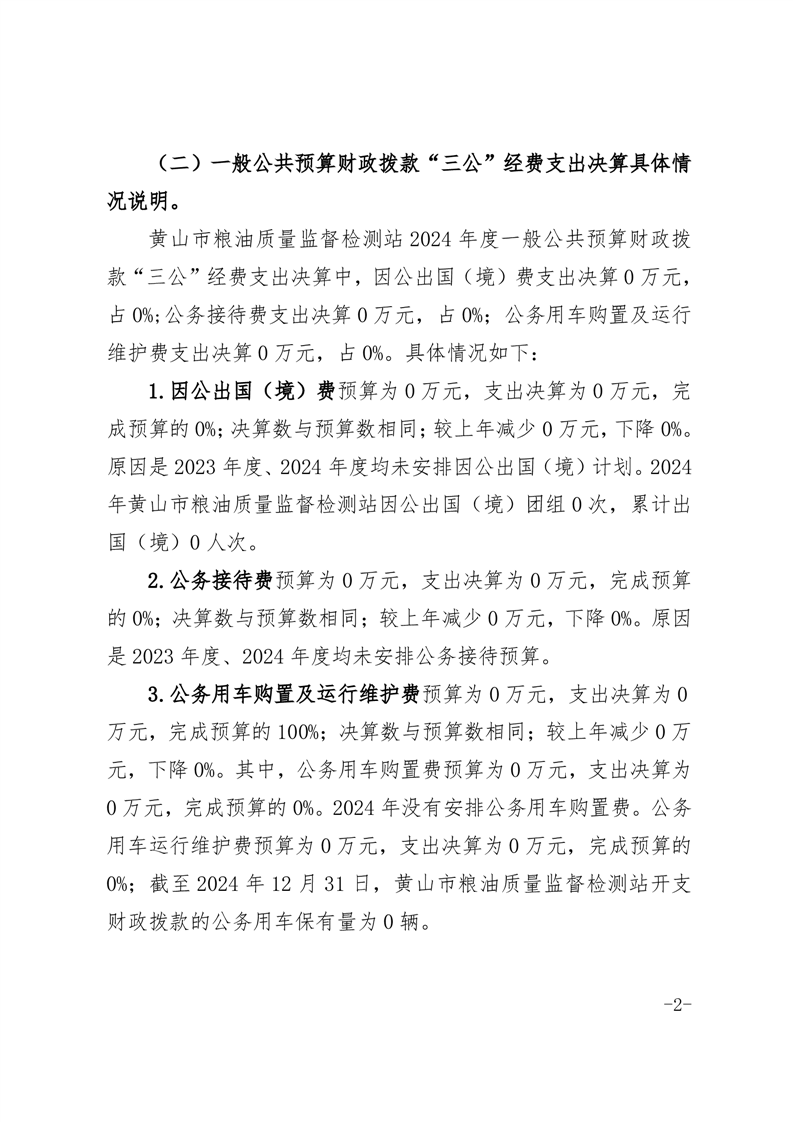 黄山市粮油质量监督检测站2024年度一般公共预算财政拨款“三公”经费支出决算