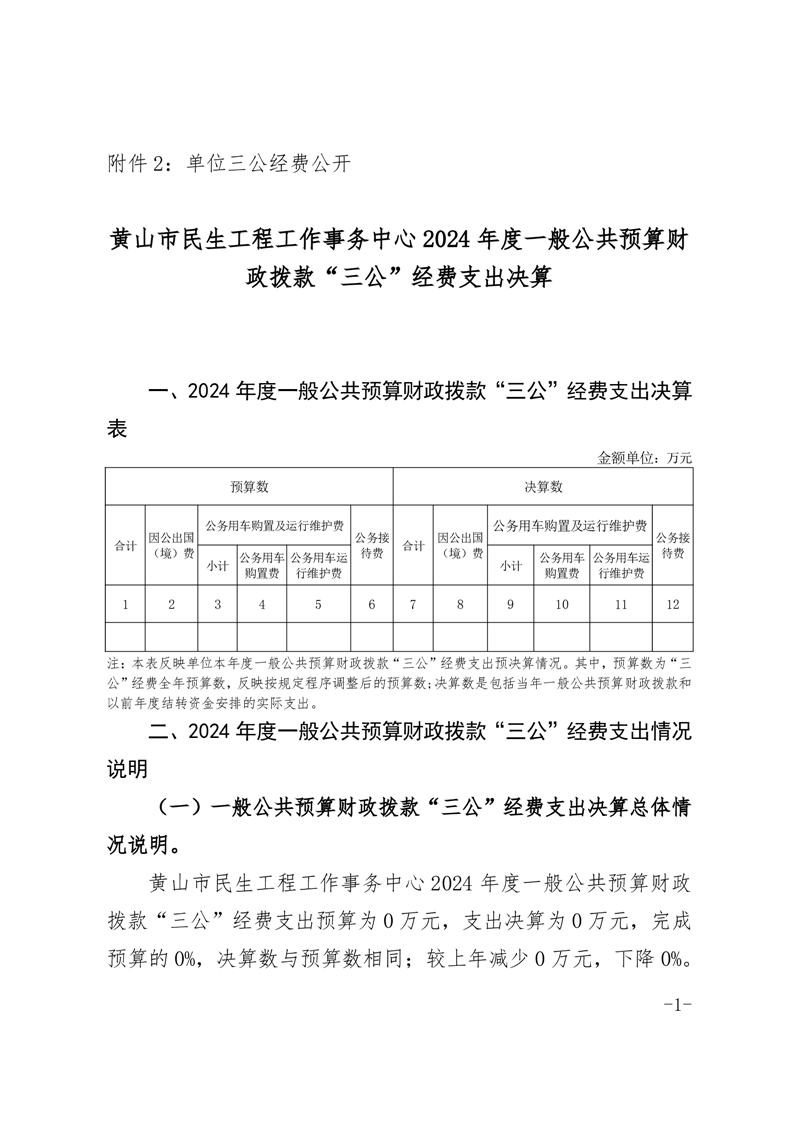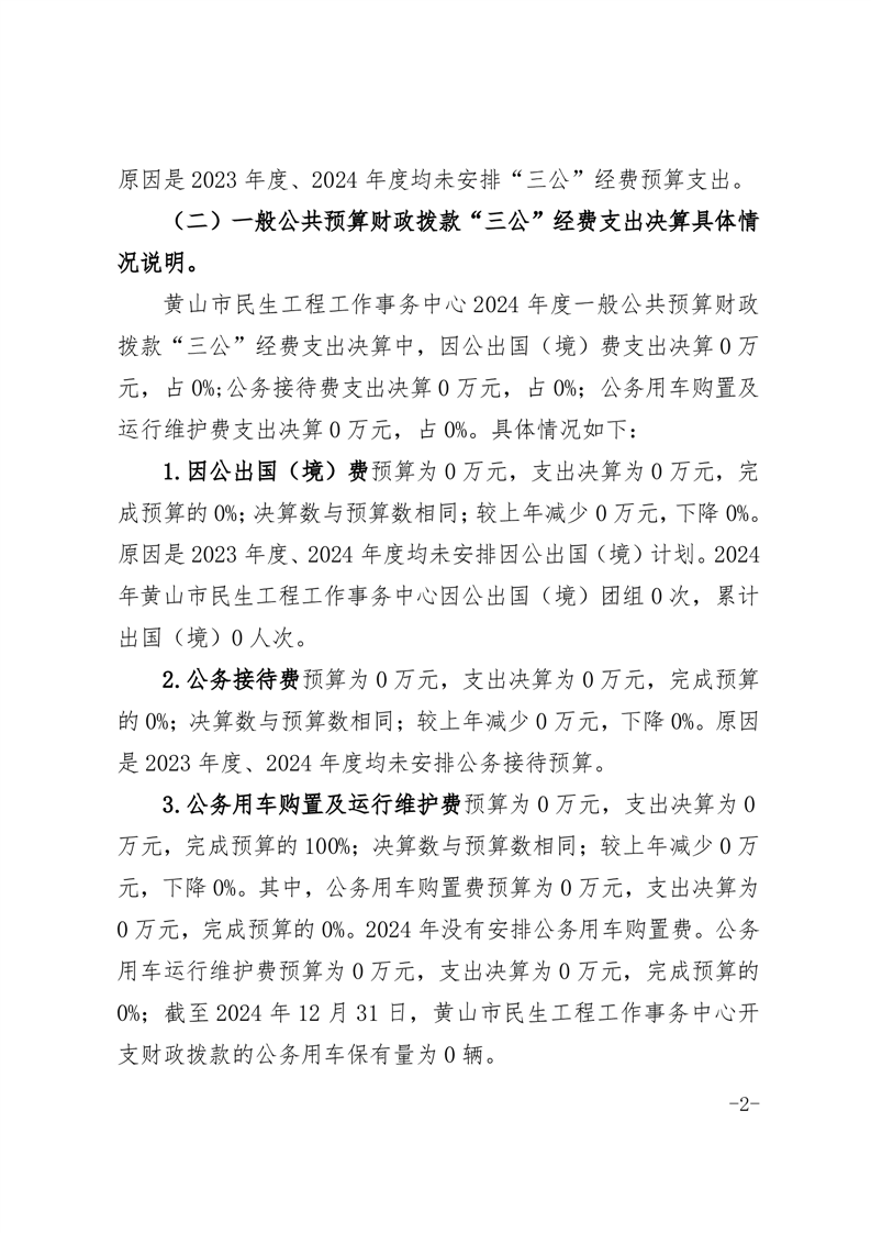 黄山市民生工程工作事务中心2024年度一般公共预算财政拨款“三公”经费支出决算