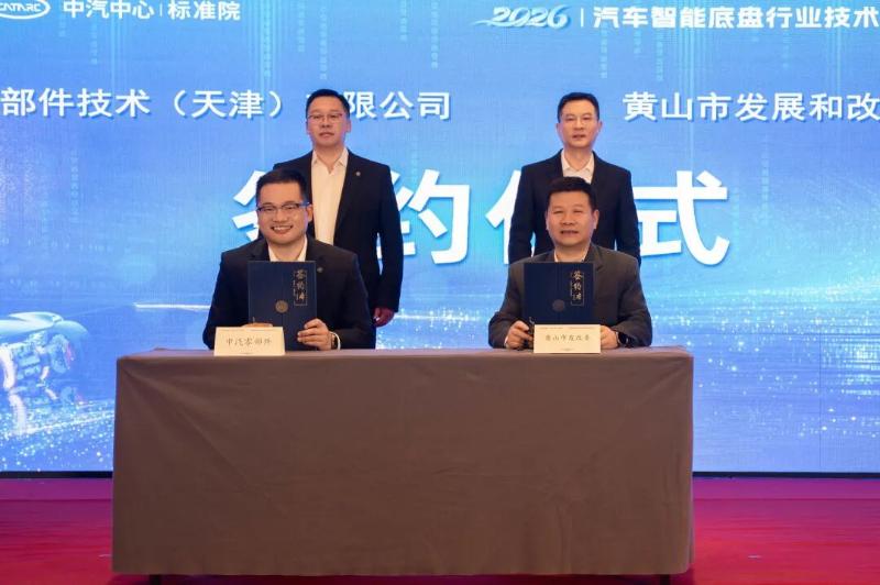 大会上,中汽零部件与安徽省黄山市发改委签署了战略合作协议,双方将围绕智能底盘测试技术、产业生态培育、标准协同创新等方面开展深度合作,进一步发挥黄山独特的制动道路试验资源优势,推动智能底盘技术与地方产业深度融合。
